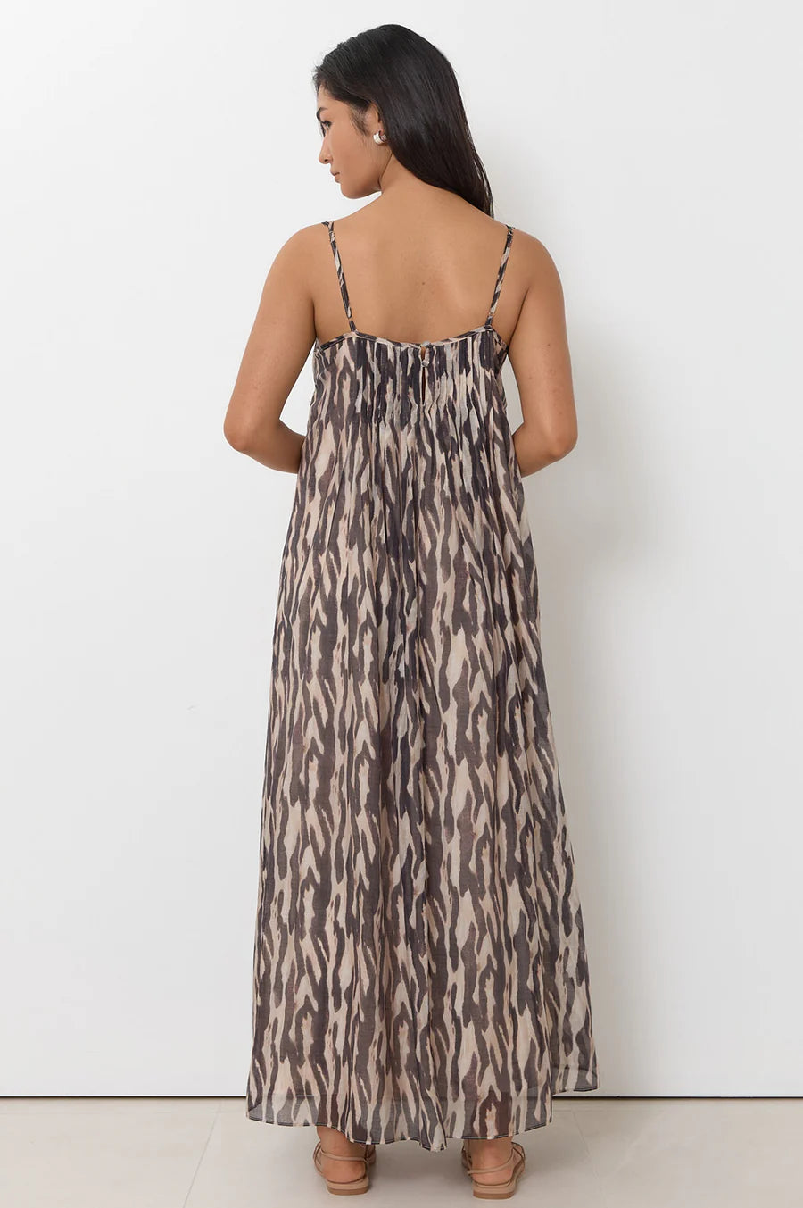 Embrace effortless elegance with the Indra Pintuck Maxi Dress in Zebra, a relaxed and feminine silhouette designed for all-day comfort and style. Featuring a soft sweetheart neckline and adjustable straps, this maxi allows you to tailor the fit while adding a touch of romantic charm.