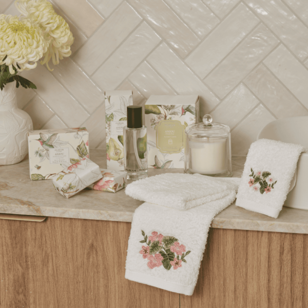Elevate everyday hand care with the Anjou French Pear & Vanilla Soap Gift Set. This beautifully packaged set features two triple-milled soaps, individually wrapped in Anjou’s signature botanical design of pears, blossoms, and hummingbirds.