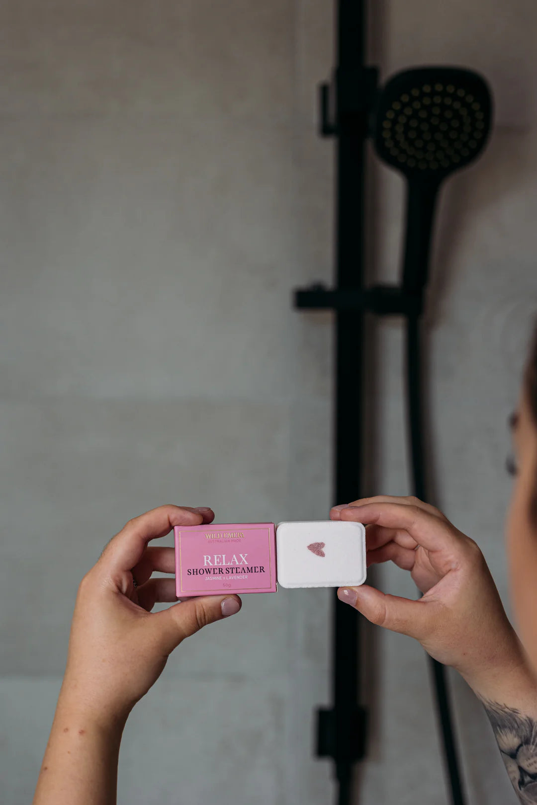 Playful yet serene, our RELAX shower steamer is the perfect way to add a touch of indulgence to your everyday routine. Simply place in your shower, breathe deeply, and let the floral steam melt your stress away.