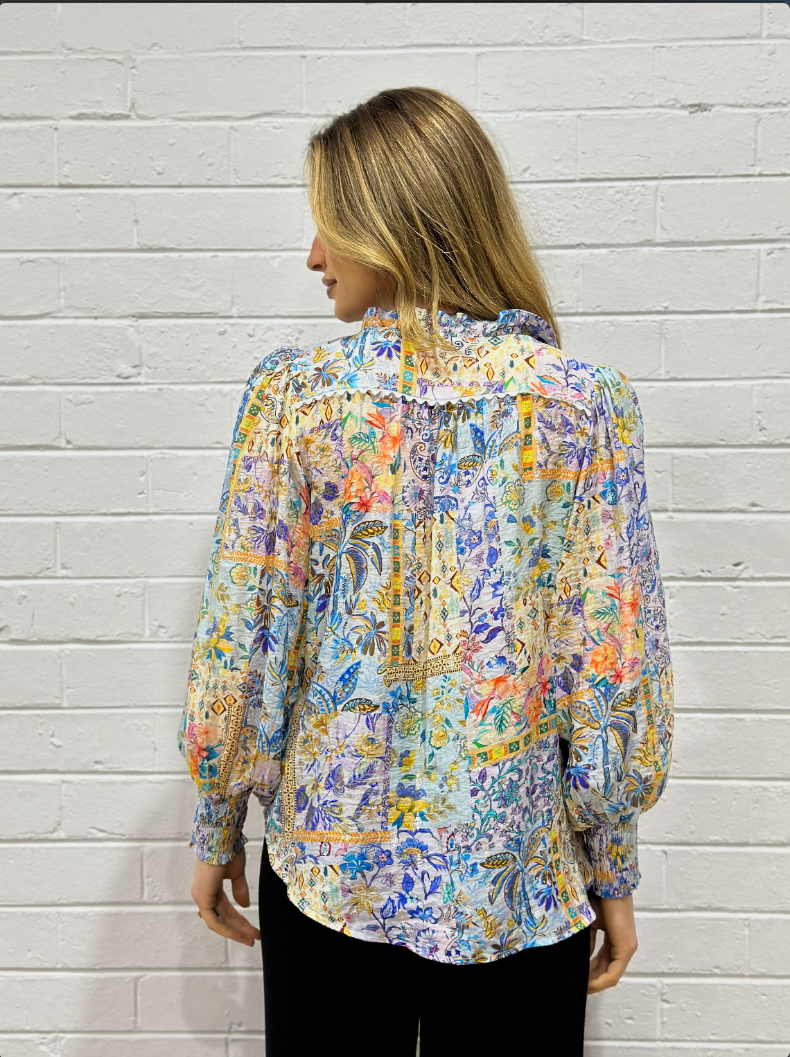 A timeless statement piece that transitions seamlessly from day to night, this floral blouse adds a touch of refined glamour to your wardrobe.