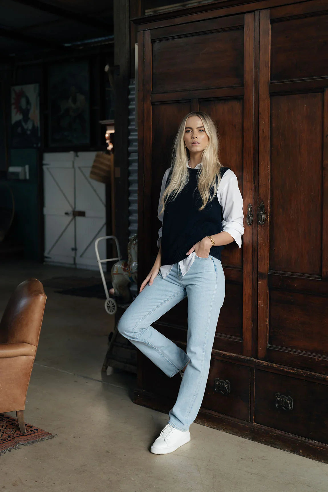 Pair it with your favorite jeans or layer it with the Stephanie Shirt for a chic, casual look. Elevate your knitwear game with the Gale Vest – where comfort meets timeless style.