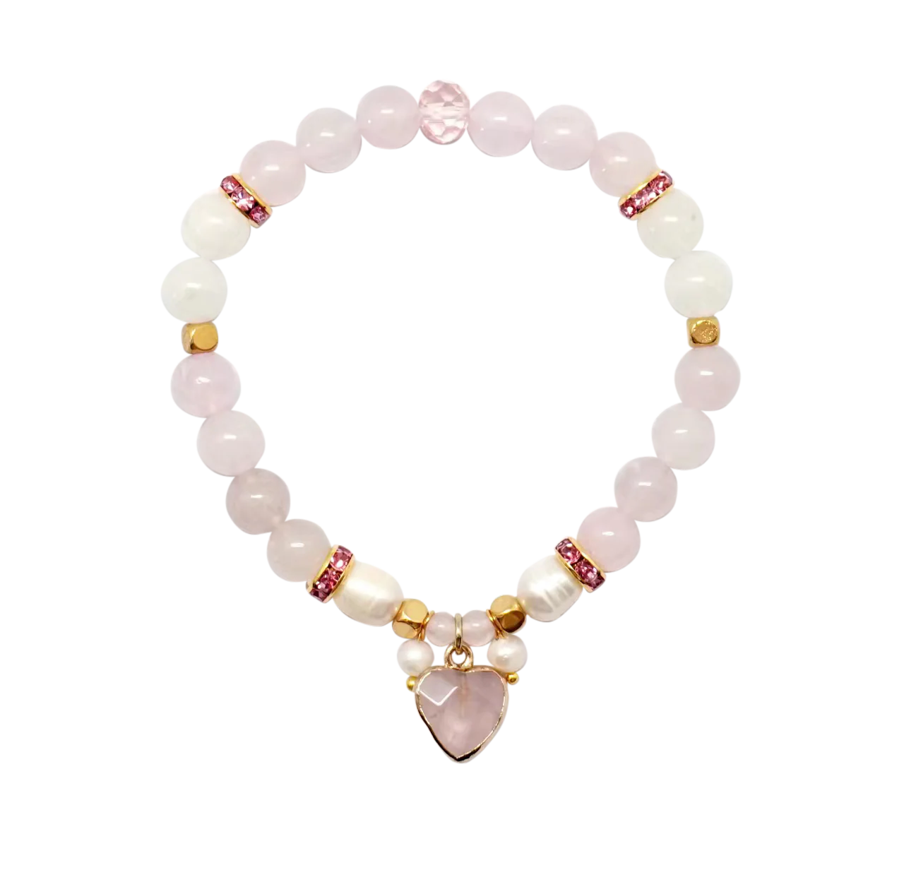 The Rose Quartz design. Rose Quartz is known as the "Heart Stone" and symbolizes unconditional love and infinite peace, fostering deep inner healing, and self-love. It will provide comfort and dispels negativity making our Rose Quartz bracelet gift set a perfect gift for someone that needs a little self confidence, or some positive energy and healing.