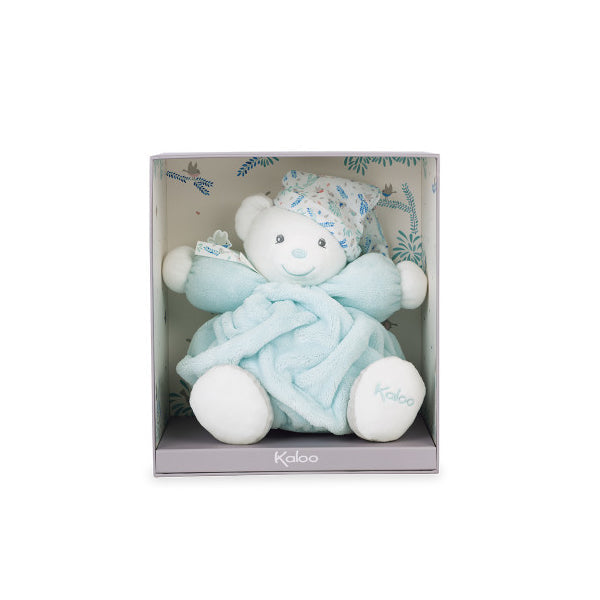Teddy bear with a fluffy body and wearing a cute little hat. With his friendly face and smile it makes him an ideal companion for your child. He is embellished with printed ribbons featuring feather and bird designs in keeping with the range's delicacy and lightness. Accompanied by his friend the bird, he is ready for sweet adventures with your baby. Machine washable. Presented in a beautiful gift box that can be personalised with a message in the space available under the lid.