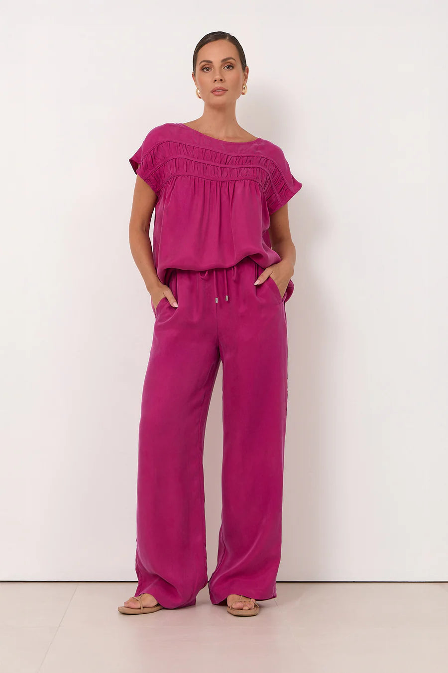 Featuring an elasticised waistband with an adjustable drawstring finished with silver eyelets and toggles, the Kelly Pant offers a custom fit without compromising style. Side pockets add everyday practicality, making these a versatile piece for both casual and elevated looks.