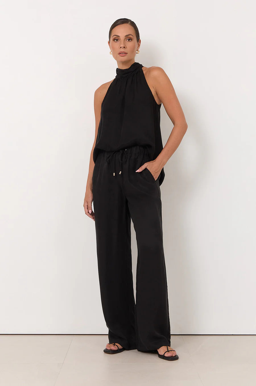 Featuring an elasticised waistband with an adjustable drawstring finished with silver eyelets and toggles, the Kelly Pant offers a custom fit without compromising style. Side pockets add everyday practicality, making these a versatile piece for both casual and elevated looks.