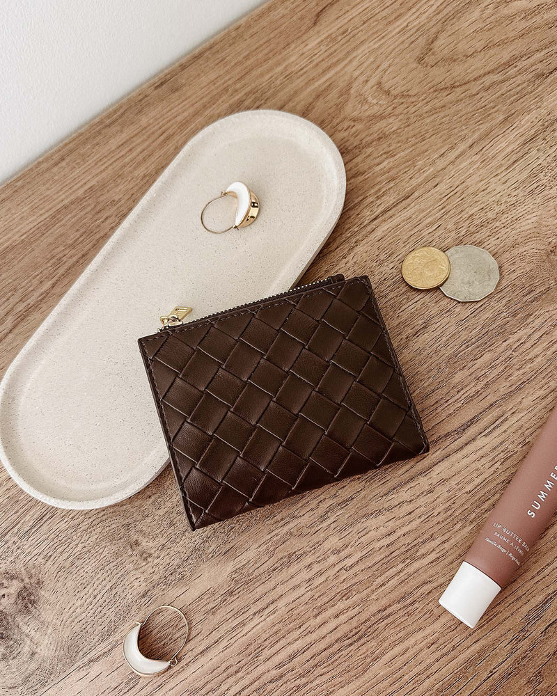Practical yet elegant, the Lily Woven Chocolate Wallet is the go-to piece for those who value simplicity, organisation, and timeless style.