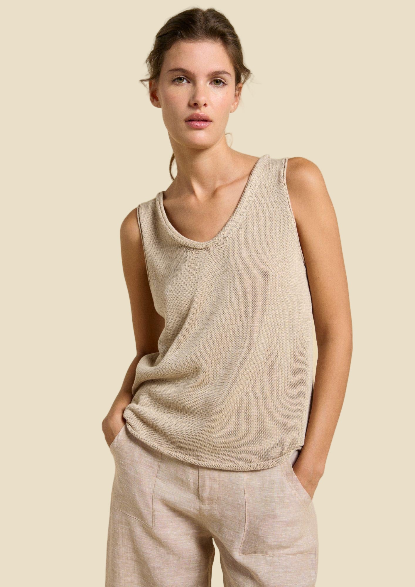 The Scoop Spring Tank Beige is an essential piece for effortless summer style, offering comfort, versatility, and timeless appeal.