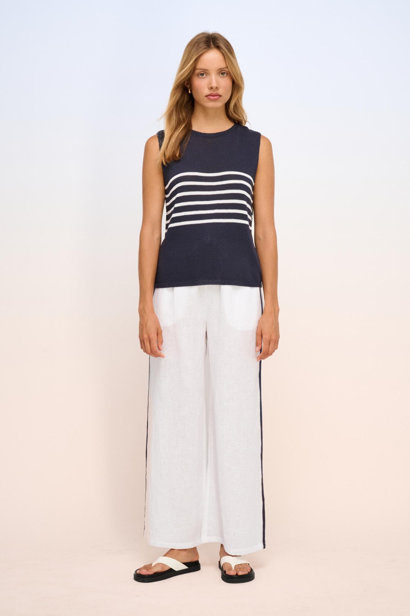 Styled back with your favourite denim or layered under a lightweight blazer, this gorgeous striped tank is the perfect blend of relaxed and refined. Designed for effortless everyday wear, it features a flattering silhouette, soft breathable fabric, and timeless stripe detailing that never goes out of style.