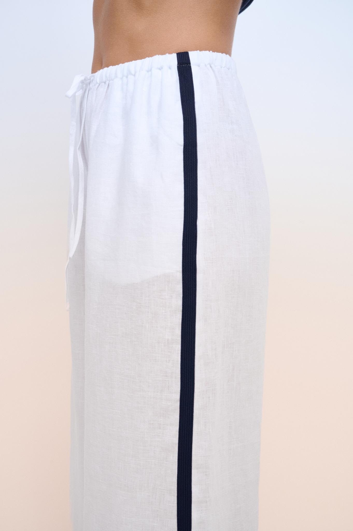 The standout contrast side stripe adds a subtle sport-luxe vibe, giving this classic linen pant a modern edge. Whether styled with the Monaco Stripe Spring Tank, a simple tee, or a lightweight knit, these pants are your go-to for polished yet relaxed dressing.