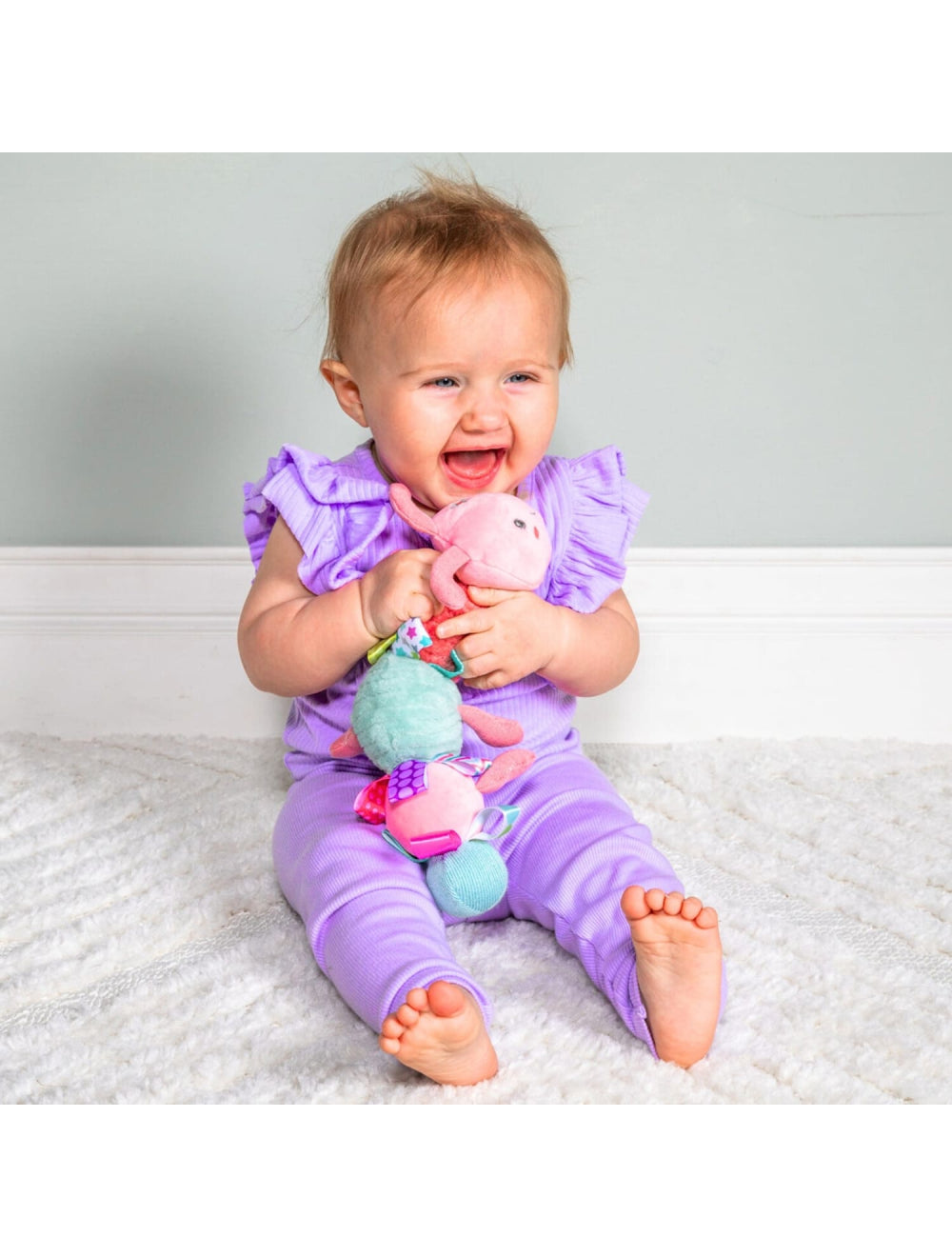 The Taggies® range was born from one mum’s simple observation — her baby’s fascination with satin tags. That moment sparked a world of sensory comfort toys designed to soothe and stimulate infants. Each Taggies piece features signature looped ribbons, providing a calming, tactile experience that encourages self-soothing and early sensory development.