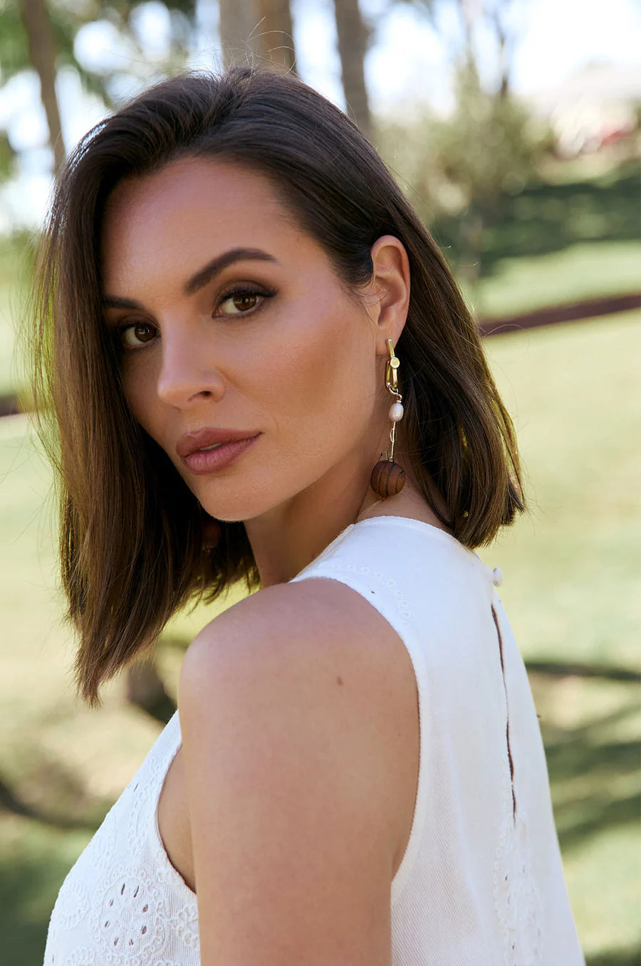 Drop-style earrings with timber and freshwater pearl detail