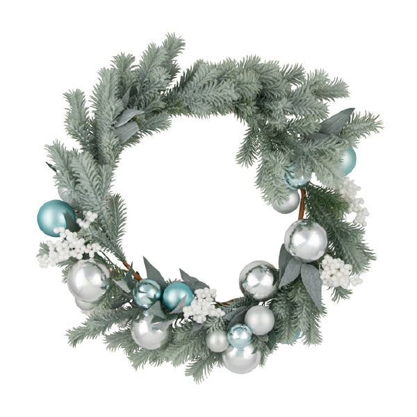 Create a festive atmosphere in your home with this elegant Sage Silver Bauble Wreath.