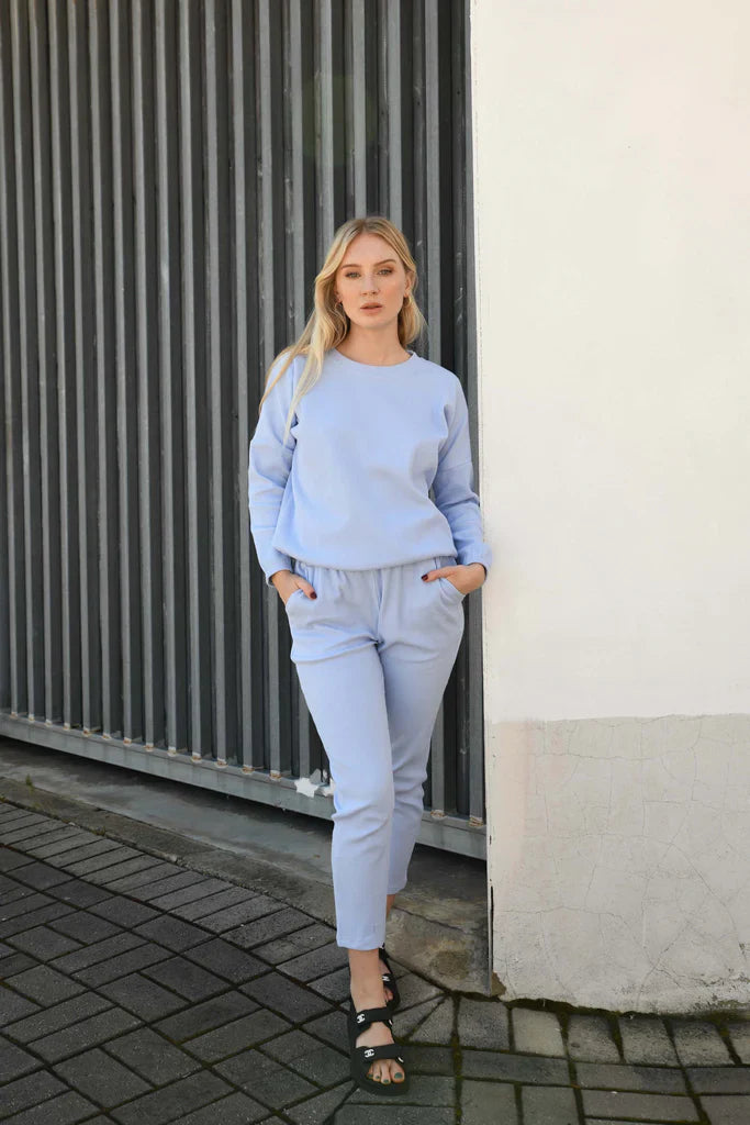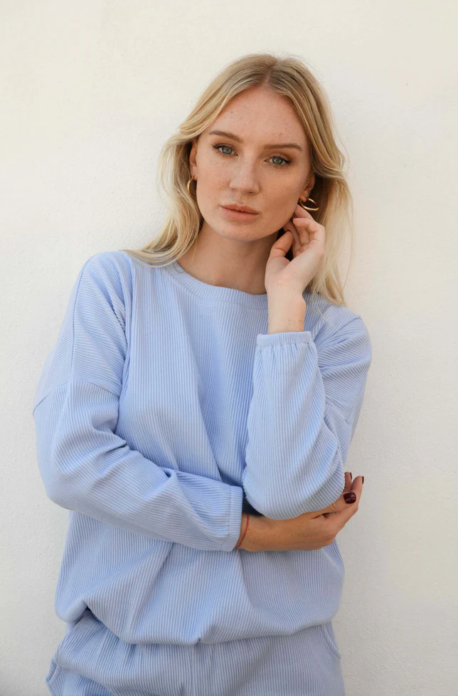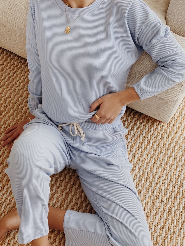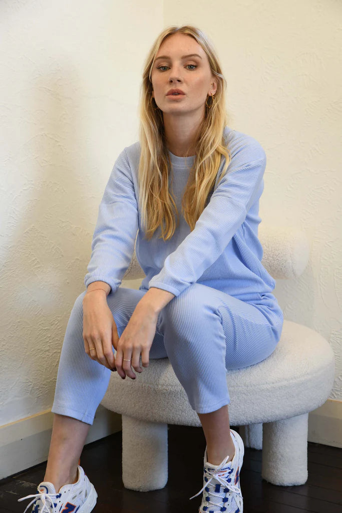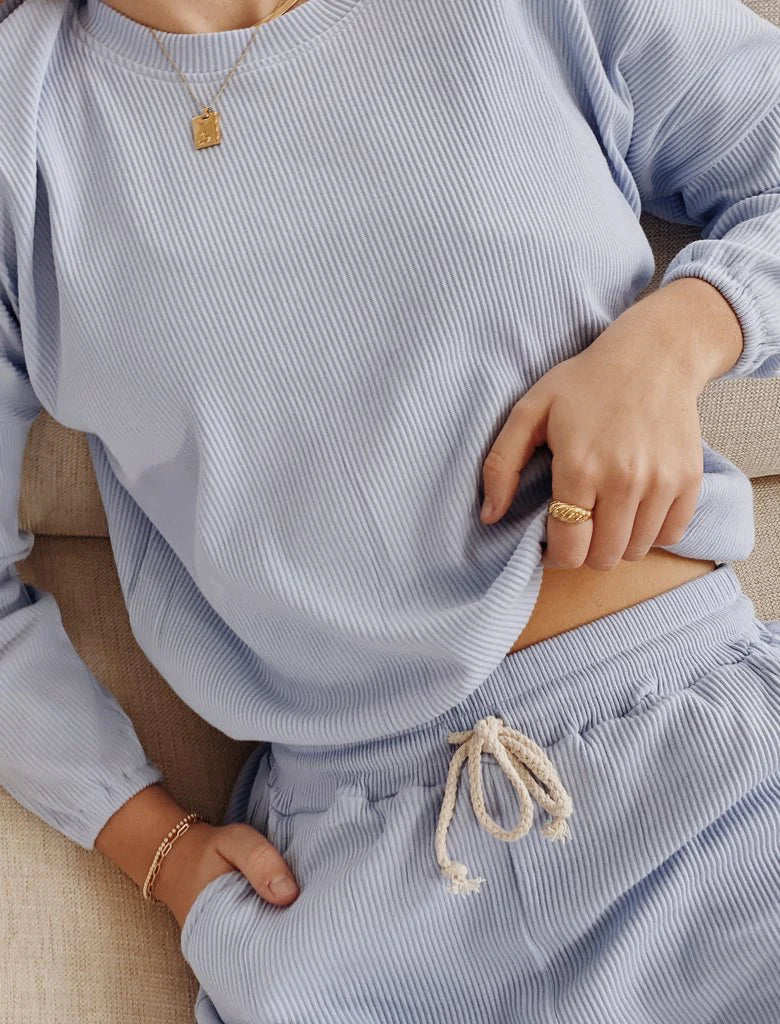 The Zaza Lounge Wear Set is a comfy 100% ribbed cotton pant and top.